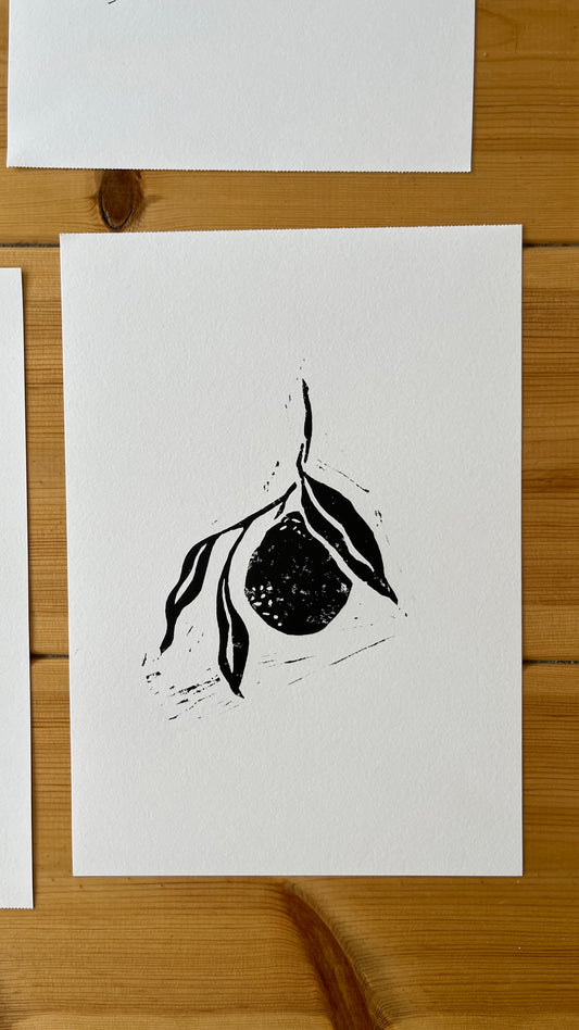 The Dance Of The Orange- Lino print